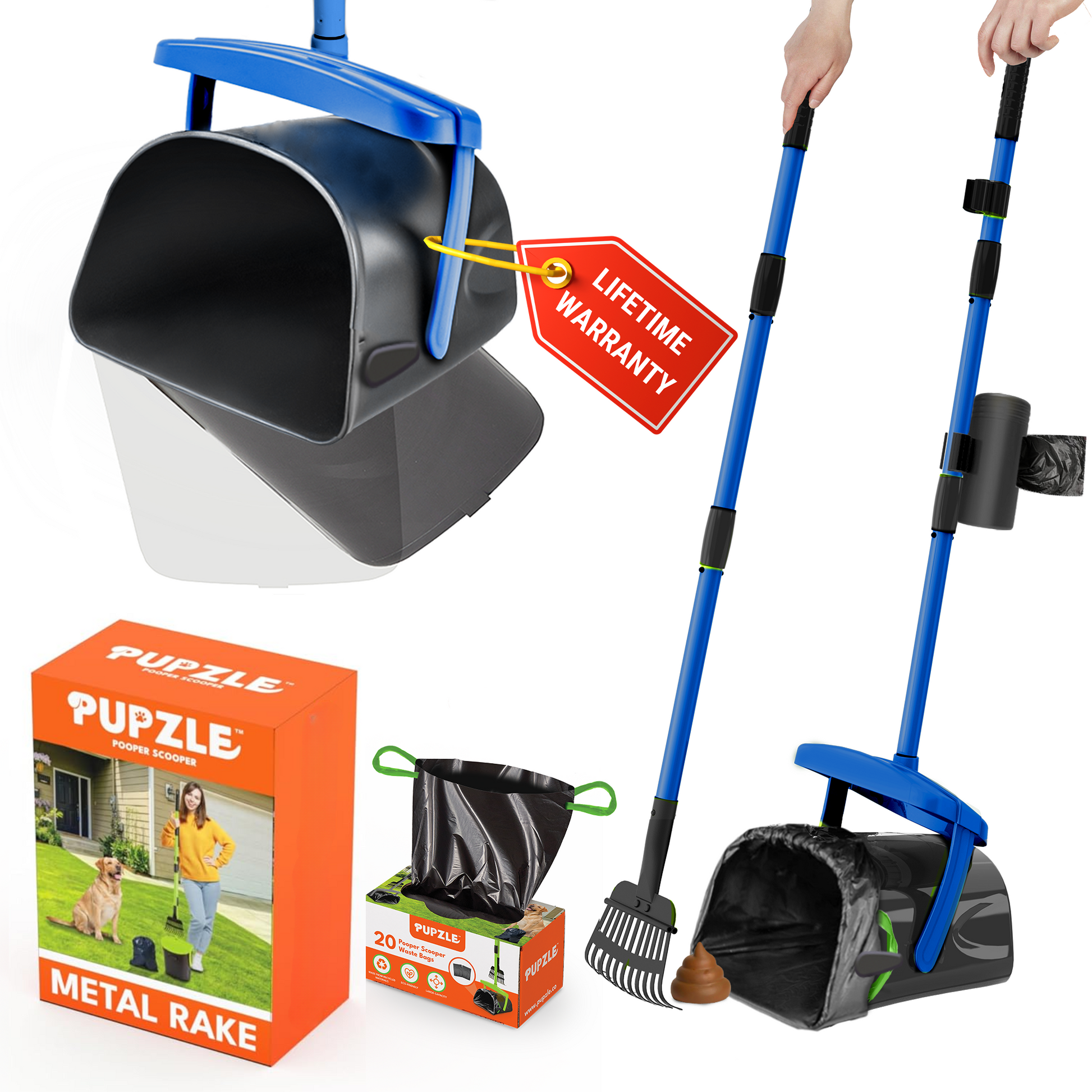 Pupzle Dog Pooper Scooper with Bags, Heavy Duty Metal Poop Scooper